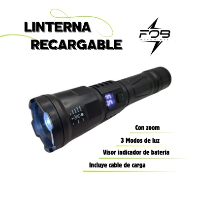 LINTERNA RECARGABLE CON ZOOM *VISOR % DE BATERIA*