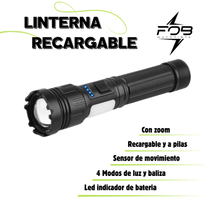 LINTERNA TACTICA *5 POSICIONES DE LUZ//RECARGABLE//A PILAS (NO INCL)